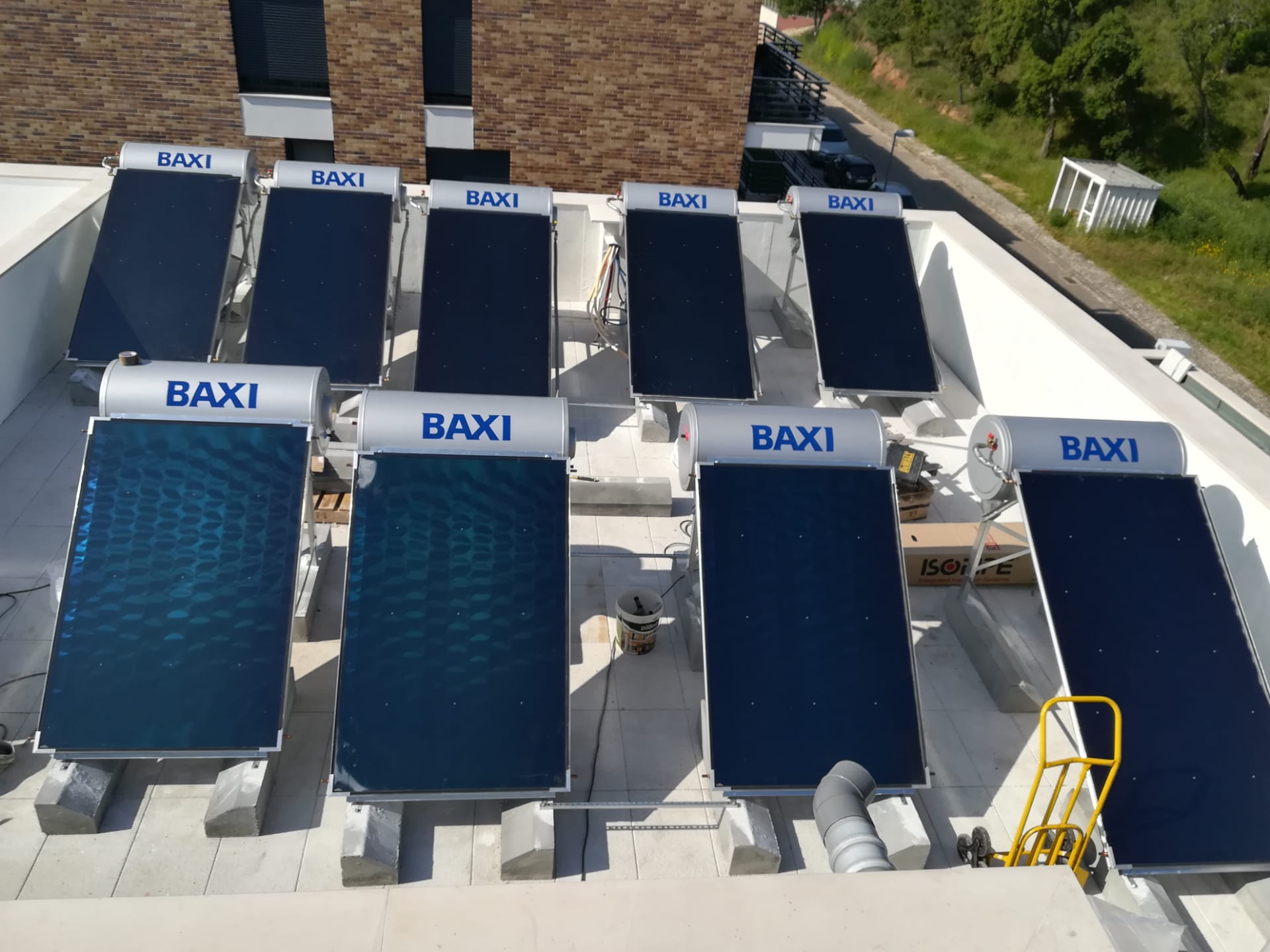 A energia Solar térmica é a opção mais económica para produzir as águas quentes sanitárias (AQS). A sua instalação é obrigatória em novas construções desde 2006 e pode representar poupanças de 80% ou mais nos custos de produção de AQS e dar ainda um significativo contributo para a redução dos custos do aquecimento ambiente no Inverno.